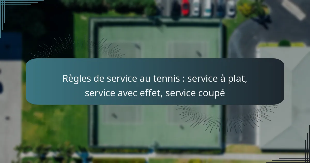Les règles de service au tennis sont cruciales pour maintenir un jeu équitable et incluent des directives sur la séquence de service, les fautes de pied et l’étiquette. Parmi les différents types de services, le service plat offre de la vitesse avec un minimum de rotation, tandis que le service avec effet ajoute de la courbe et de l’imprévisibilité, défiant les adversaires avec son rebond unique. Comprendre ces services améliore la stratégie et l’efficacité d’un joueur sur le court.