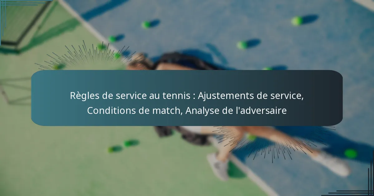Les règles de service au tennis sont cruciales pour garantir une exécution juste et légale des services pendant les matchs. Les joueurs doivent comprendre les critères d’un service légal, y compris les fautes de pied et les dimensions de la zone de service, tout en adaptant leurs stratégies de service en fonction des conditions de match et de l’analyse de l’adversaire. En tenant compte de facteurs tels que les surfaces de court et les effets du vent, les joueurs peuvent améliorer leur efficacité au service et exploiter les faiblesses de leurs adversaires.