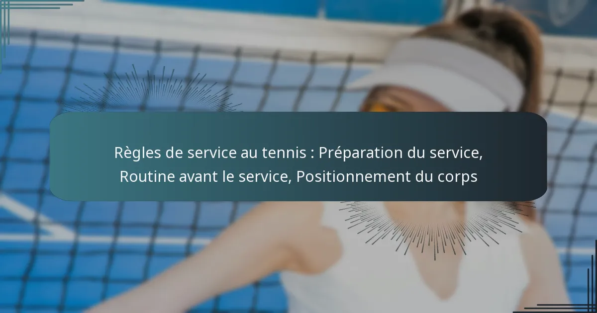 Comprendre les règles et les techniques de service au tennis est essentiel pour tout joueur cherchant à améliorer son jeu. Des éléments clés tels que la prise, la position, et la mécanique de lancer jouent un rôle significatif dans la réalisation de services puissants et précis. De plus, établir une routine de pré-service peut améliorer la concentration et réduire l’anxiété, tandis qu’un positionnement corporel approprié garantit une performance optimale sur le court.