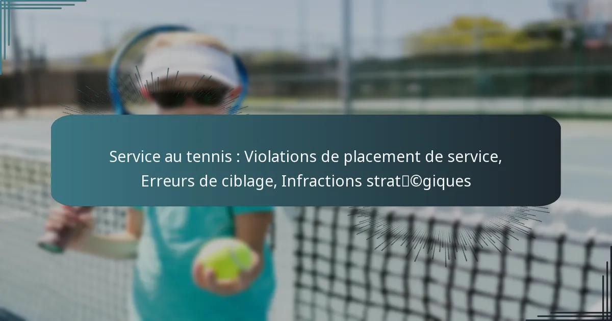 Le service au tennis implique un placement précis et le respect des règles, ce qui est crucial pour les joueurs afin d’éviter les violations de placement de service telles que les fautes de pied et les erreurs de ciblage. Ces infractions entraînent non seulement des points perdus, mais peuvent également modifier l’élan du match. De plus, les infractions stratégiques, qui englobent des tactiques déloyales lors des services, menacent l’intégrité du jeu et peuvent entraîner des pénalités. Comprendre ces aspects est vital pour maintenir l’équité compétitive et améliorer la performance globale sur le court.