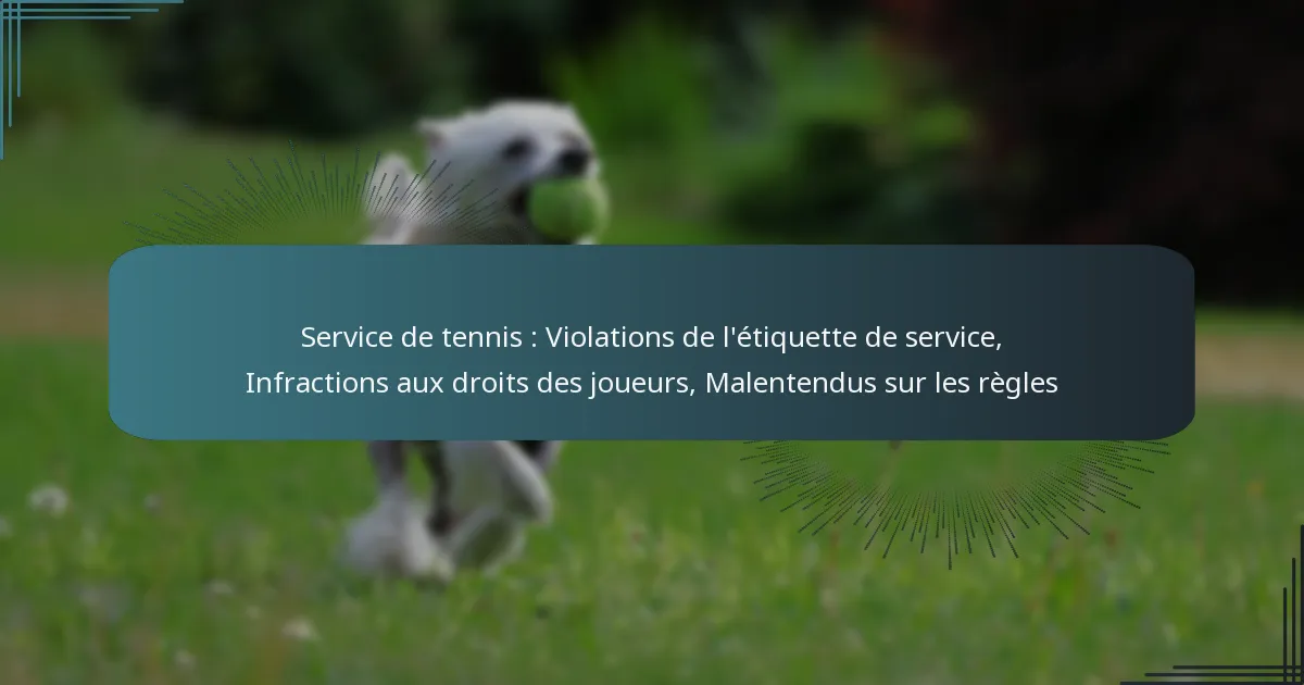 Le service au tennis implique non seulement des compétences techniques, mais aussi le respect de l’étiquette et des règles qui peuvent influencer le déroulement et l’équité du jeu. Les violations de l’étiquette de service, telles que les distractions et les retards, peuvent entraîner des pénalités, tandis que les joueurs ont des droits spécifiques qui protègent leur capacité à servir efficacement. Les malentendus concernant les règles de service, y compris les fautes de pied et les services let, peuvent compliquer davantage l’expérience, affectant à la fois la performance et les résultats des matchs.